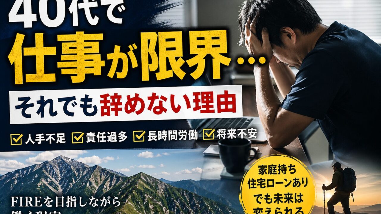 40代で仕事が限界なら根性論で乗り切る時代ではありません。しかしやらなきゃいけないことはやるしかないのが40代の宿命で多少無理してでも限界でも、それでも限界を引き上げて生きていくことで人生も楽しめると今は思います。30代と変わったことは周りとの比較ではなく自分自身との闘い、葛藤を乗り越えていくこと、自分軸がしっかり持っていないと無気力おじさんになってしまいそうです・・